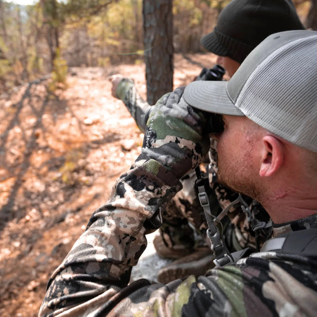 Guaranteed element proof performance in a mid-weight glove! This 4-way stretch Caza Camo glove features a waterproof yet breathable insert bonded to a water-resistant outer shell. A matte silicone printed palm provides grip and dexterity in the harshest conditions and, tech-touch panels on index fingertip and thumb, make sure you can stay warm, dry, and connected.